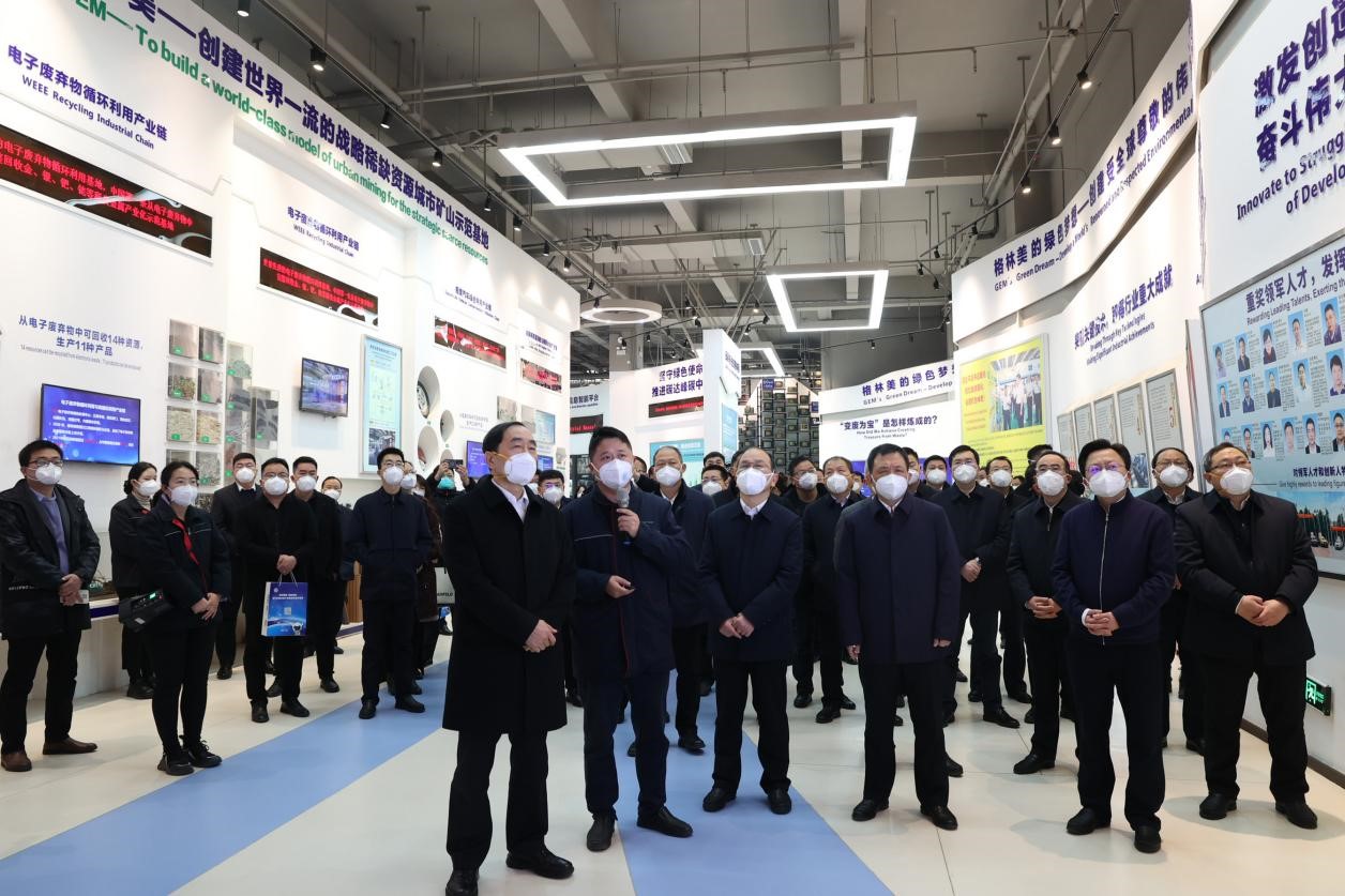 圖1 趙海山副省長(中)一行參觀“城市礦山”博物館