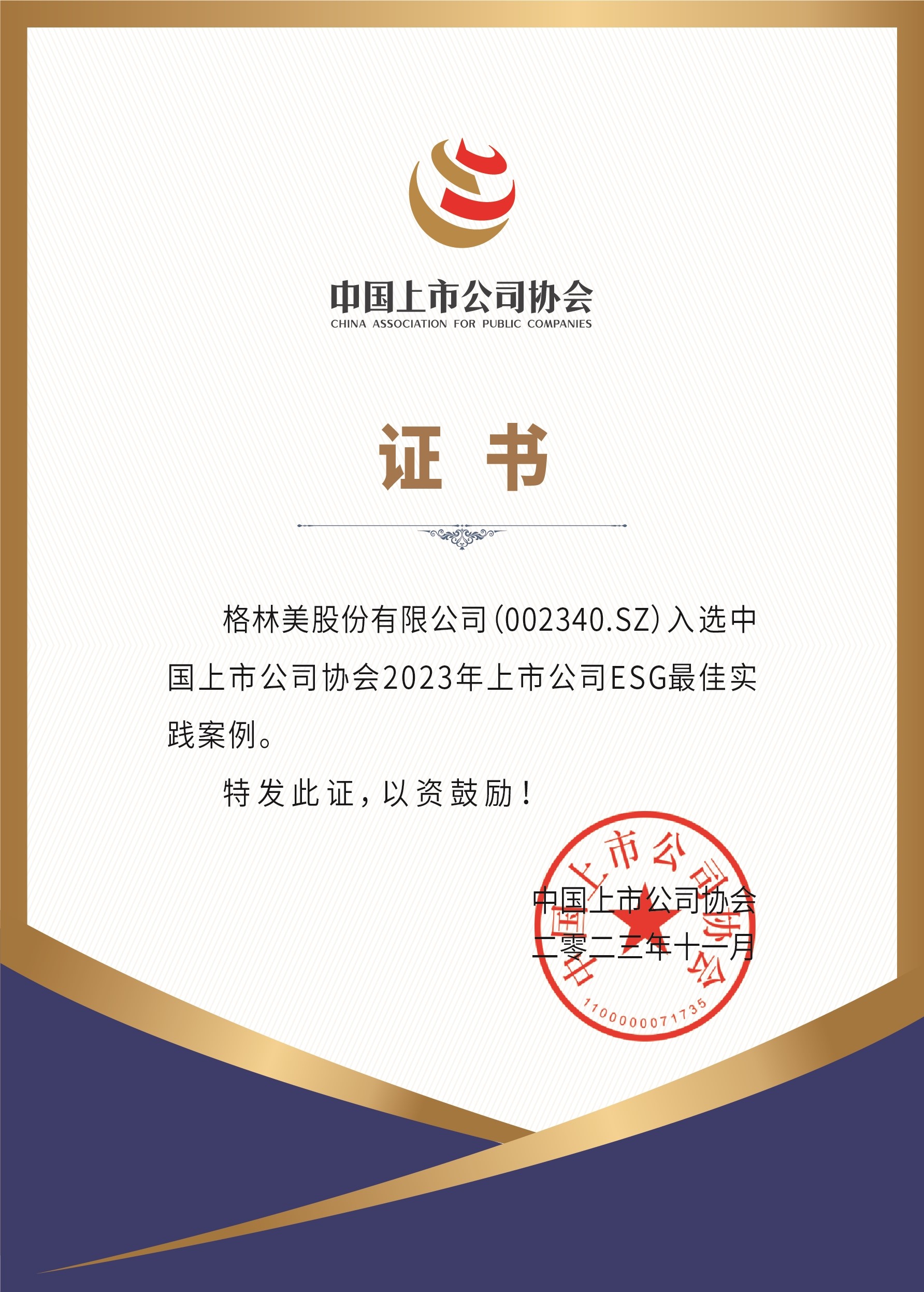 2023年11月16日,由中國上市公司協(xié)會(以下簡稱“中上協(xié)”)主辦的首屆中國上市公司可持續(xù)發(fā)展大會(以下簡稱“大會”)在北京召開。大會發(fā)布了“2023年度上市公司ESG最佳實踐案例”,格林美成功入選,并與中國移動、阿里巴巴、寧德時代、國網(wǎng)英大、蒙牛等著名企業(yè)獲獎案例共同被匯編寫入《中國上市公司ESG最佳實踐案例2023》。