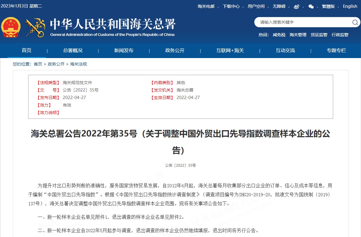 2023年1月3日,格林美荊門園區(qū)收到一份從武漢海關(guān)寄來的特別的新年禮物——“中國(guó)外貿(mào)出口先導(dǎo)指數(shù)樣本企業(yè)”榮譽(yù)證書,為格林美送來了2023年海外市場(chǎng)業(yè)績(jī)紅火的東風(fēng)。根據(jù)中國(guó)海關(guān)總署發(fā)布的2022年第35號(hào)《海關(guān)總署關(guān)于調(diào)...