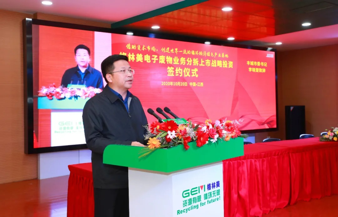 在全市上下深入貫徹宜春市委四屆十次全會精神之際,10月20日,格林美電子廢物業(yè)務(wù)分拆上市戰(zhàn)略投資簽約儀式在市循環(huán)經(jīng)濟產(chǎn)業(yè)園區(qū)隆重舉行。宜春市委書記于秀明,宜春市委常委、常務(wù)副市長蔡清平,豐城市委書記李曉楚,市長徐結(jié)強,格林美集團董事長、總經(jīng)理許開華、格林美集團董事王敏夫婦等格林美集團負責(zé)人一同出席簽約儀式,市委常委、常務(wù)副市長余華陽主持簽約儀式。市領(lǐng)導(dǎo)羅光輝,宜春豐城高新區(qū)領(lǐng)導(dǎo)熊震宇,豐城發(fā)展投資控股集團有限公司、樂清德匯等十余家戰(zhàn)略投資者,金發(fā)科技、南京聚隆、廣東銀禧、會通新材料、上海睿莫等產(chǎn)業(yè)鏈上下游二十余家戰(zhàn)略客戶,共計200余人出席了簽約儀式。