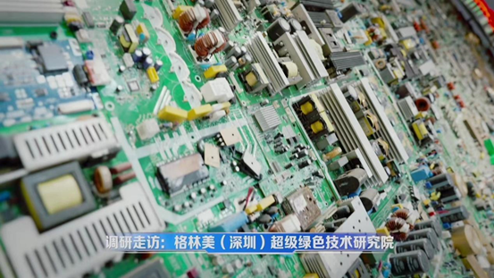 走進格林美(深圳)超級綠色研究院,映入眼簾的是一面“精致”的線路板墻,下方陳列著“大哥大”、打印機等多年前流行的電子設備,旁邊還有一面擺放著自上個世紀60年代至今的報廢電視機墻。
