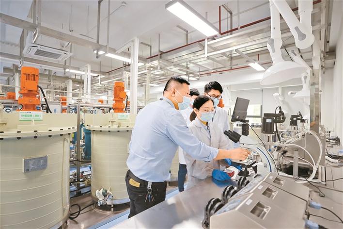 桃花源科技創(chuàng)新生態(tài)園內(nèi),專家在超高鎳動力芯材料實驗室開發(fā)高鎳三元前驅(qū)體。深圳特區(qū)報記者 劉鋼 攝