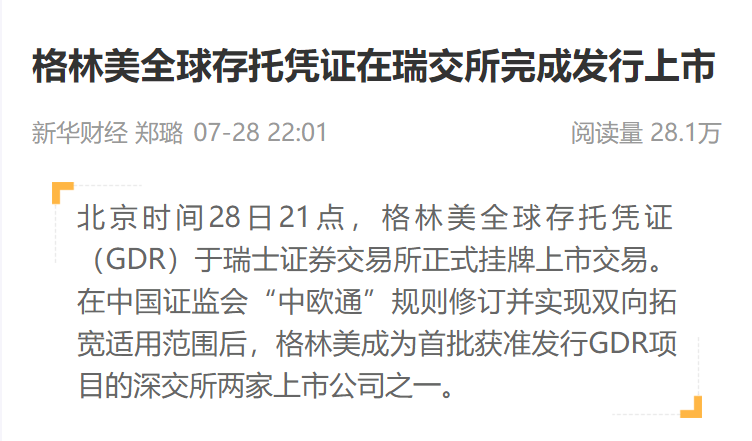 7月28日,新華社·新華財經(jīng)欄目發(fā)布文章《格林美全球存托憑證在瑞交所完成發(fā)行上市》。