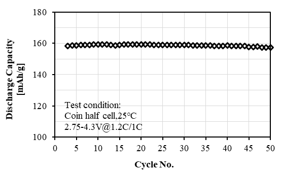 L-5021產(chǎn)品應(yīng)用:用于18650圓柱電芯,4.2V下測(cè)試,0.2C放電比容量為168mAh/g,循環(huán)性能:1C/10C,1000圈≥80%,可用電動(dòng)工具。