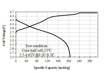 LRM35M產(chǎn)品應(yīng)用:用于方型或軟包電池,4.65V下0.2C放電258.9mAh/g,可用于動(dòng)力汽車或電動(dòng)工具