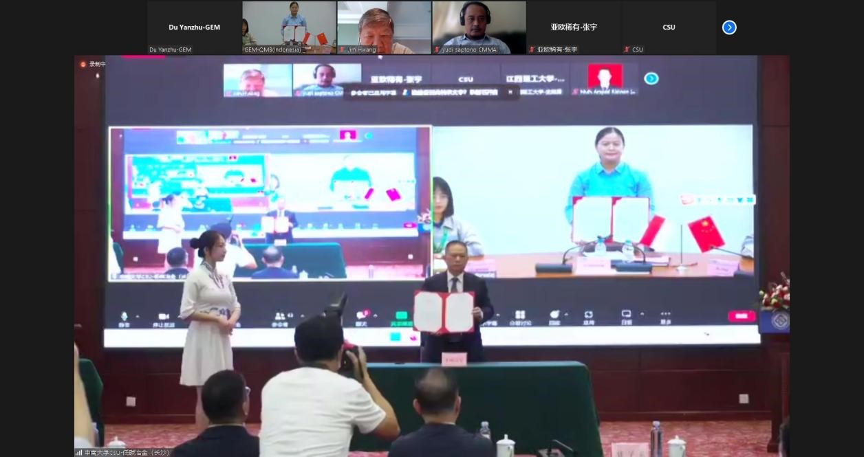 圖4 格林美、中南大學、印尼海統(tǒng)部三方簽署“關于合作培養(yǎng)印度尼西亞籍國際學生的協(xié)議”