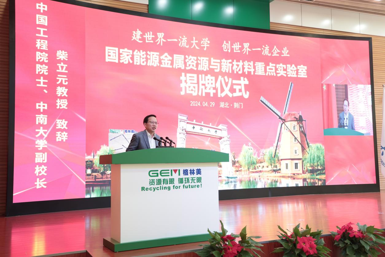 春光無限好,春色照滿園。2024年4月29日,由中南大學(xué)與格林美聯(lián)合共建的國家能源金屬資源與新材料重點(diǎn)實(shí)驗(yàn)室(以下簡稱“國家重點(diǎn)實(shí)驗(yàn)室”)揭牌儀式在格林美荊門園區(qū)隆重舉行。中國工程院院士、中南大學(xué)副校長柴立元教授,荊門市委副書記、市長陳家偉,國家能源金屬資源與新材料重點(diǎn)實(shí)驗(yàn)室主任、中南大學(xué)資產(chǎn)管理處處長賴延清教授,格林美集團(tuán)董事長許開華教授共同為國家重點(diǎn)實(shí)驗(yàn)室揭牌。荊門市副市長、荊門高新區(qū)黨工委書記、掇刀區(qū)委書記周俊杰,武漢科技大學(xué)學(xué)術(shù)委員會(huì)主任張一敏教授,中南大學(xué)冶金與環(huán)境學(xué)院輕金屬及工業(yè)電化學(xué)研究所所長蔣良興教授,中南大學(xué)教育與發(fā)展辦公室主任余文武先生,深圳大學(xué)劉劍洪教授,以及格林美集團(tuán)聯(lián)合實(shí)控人、董事王敏女士等共同出席見證。