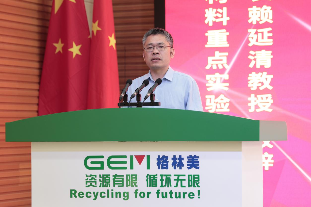揭牌儀式上,國家能源金屬資源與新材料重點(diǎn)實(shí)驗(yàn)室主任、中南大學(xué)資產(chǎn)管理處處長賴延清教授首先致辭。賴延清教授介紹了重點(diǎn)實(shí)驗(yàn)室誕生的重要戰(zhàn)略背景。為保障國家能源安全和高質(zhì)量發(fā)展的需要,中南大學(xué)以其在新能源領(lǐng)域豐厚的歷史積淀和專業(yè)基礎(chǔ),聯(lián)合格林美等新能源材料的領(lǐng)域行業(yè)頭部企業(yè),圍繞保障能源供應(yīng)鏈和產(chǎn)業(yè)鏈安全的需求,聯(lián)合組建重點(diǎn)實(shí)驗(yàn)室,并在近200家申報(bào)單位中脫穎而出,成為第一批6個(gè)“掛帥出征”直接授牌建設(shè)的重點(diǎn)實(shí)驗(yàn)室。未來,重點(diǎn)實(shí)驗(yàn)室主要圍繞新能源資源的高效提取、新能源金屬資源的高效循環(huán)、高效能源轉(zhuǎn)化材料、電化學(xué)儲能材料等4個(gè)方向開展工作,打造成新能源資源回收行業(yè)、新能源新材料行業(yè)國際一流的人才培養(yǎng)、成果轉(zhuǎn)化技術(shù)開發(fā)中心。