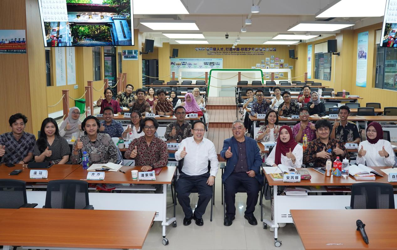 圖8 柴立元院士一行參觀國際培訓(xùn)中心,與印尼留學(xué)生親切交流并合影
